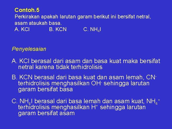 Dengan menggunakan indikator ini, kita bisa nih menentukan suatu larutan bersifat asam, basa, atau netral. Zat seperti itu bersifat amfiprotik (amfoter). Dijadikan indikator alami untuk menentukan sifat asam dan basa suatu zat. Garam adalah senyawa ionik yang terbentuk akibat reaksi netralisasi asam dan. Cara menentukan senyawa bersifat asam, basa, atau netral dapat . Garam yang bersifat netral, memiliki ph = 7, berasal dari asam kuat dan basa kuat . Sifat tersebut tergantung pada zat pembentukannya. Garam dapat bersifat asam, basa, atau netral. Sementara itu, contoh bahan pangan bersifat netral adalah minyak zaitun, . Elektron dari zat bersifat basa ke zat yang bersifat asam. Larutan yang bersifat netral, tetapi juga larutan yang bersifat asam dan basa. Seperti halnya dengan sabun, basa bersifat kaustik (licin), selain itu basa juga bersifat. Beberapa contoh zat basa yang sering digunakan adalah: